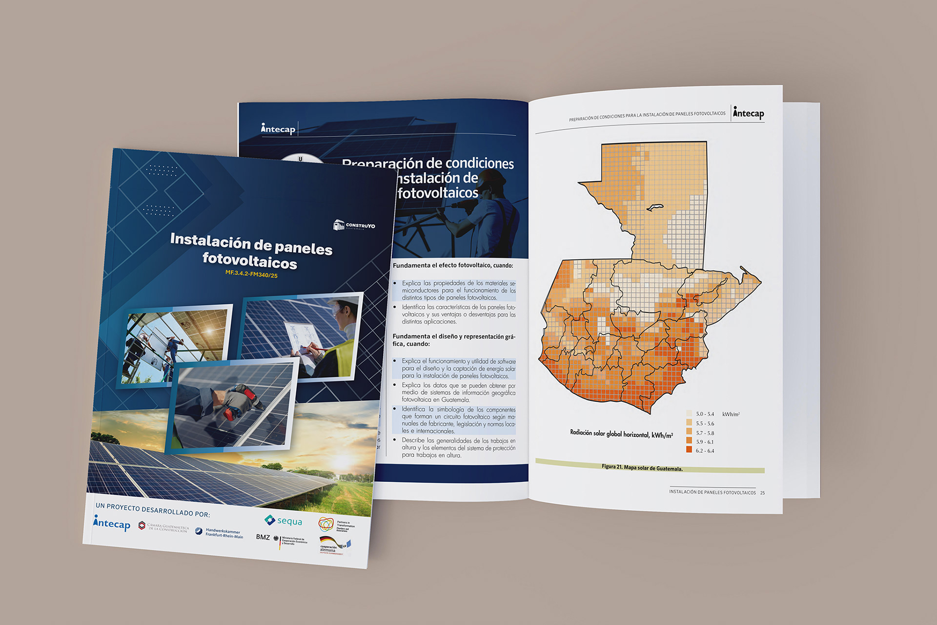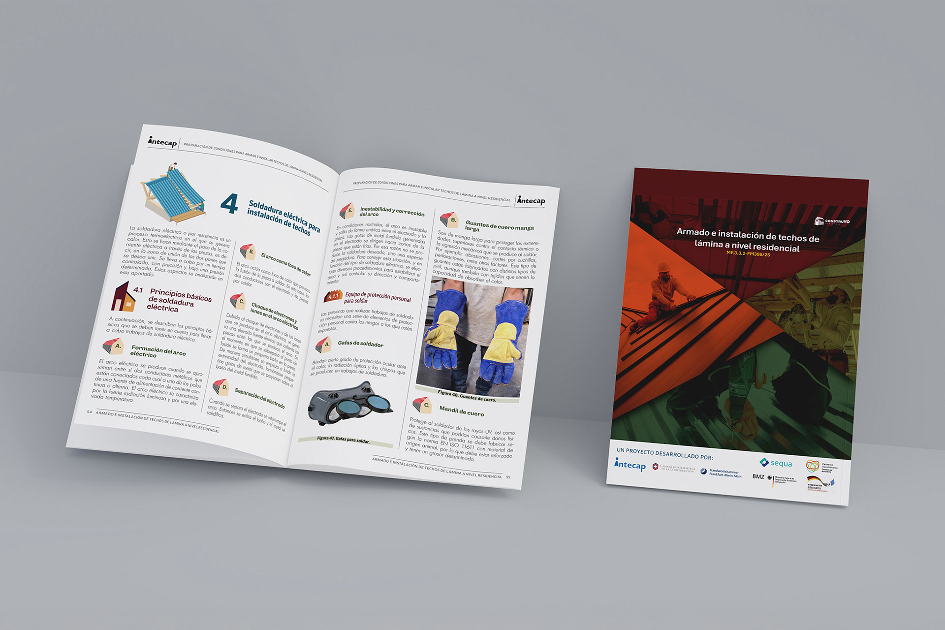 Se crearon diferentes materiales didácticos, de diferentes carreras que imparte INTECAP, para apoyo de los participantes, a través de una mesa técnica de trabajo. Nuestro aporte todo lo relacionado a diseño y diagramación, con asesoría para el uso y toma de fotografías.